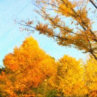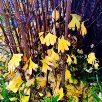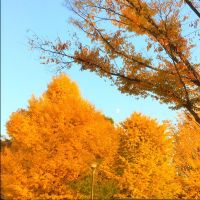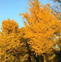 樹々も地面も秋色。
